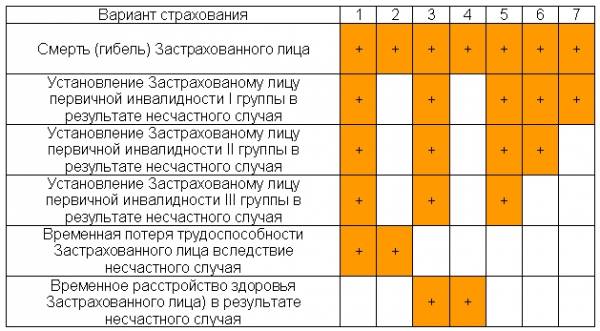- в случае установления инвалидности (в т.ч. изменение группы инвалидности на высшую): ІІІ группы – в размере 50 % страховой суммы; ІІ группы – 70 % страховой суммы; І группы – 100 % страховой суммы;